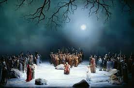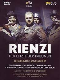 Rienzi is a bit of a strange one. It the last of Wagner’s earliest three operas, but the first that is in any way worth listening to. On the other hand, it does not belong in the same rank as the next three, which themselves are harbingers of his later, mature masterpieces. He took a comparatively long time to find his true level, but the journey there was pretty splendid in itself. Complete recordings of Rienzi have been rare and the version I have, conducted by Hollreiser on EMI, was among the first to become available. Productions are also rare and the only one I saw in a theatre was the ENO staging in 1983. It actually lends itself well to modern interpretation, though few directors can resist visual references to Italian fascism. That was certainly true of the ENO production, which used film and architectural grandeur to great effect. Indeed, the fascistic statue which dominated the stage in Act 4 remains the only instance when I have heard a set design get a round of applause as the curtain rose. The production from the Deutsche Oper, which I have on blu-ray is very similar and also uses fascistic-style propaganda film. The music of Rienzi has some splendid moments, especially the choruses, but also some longueurs – the drama often drags somewhat and does require startling visuals to be of interest.